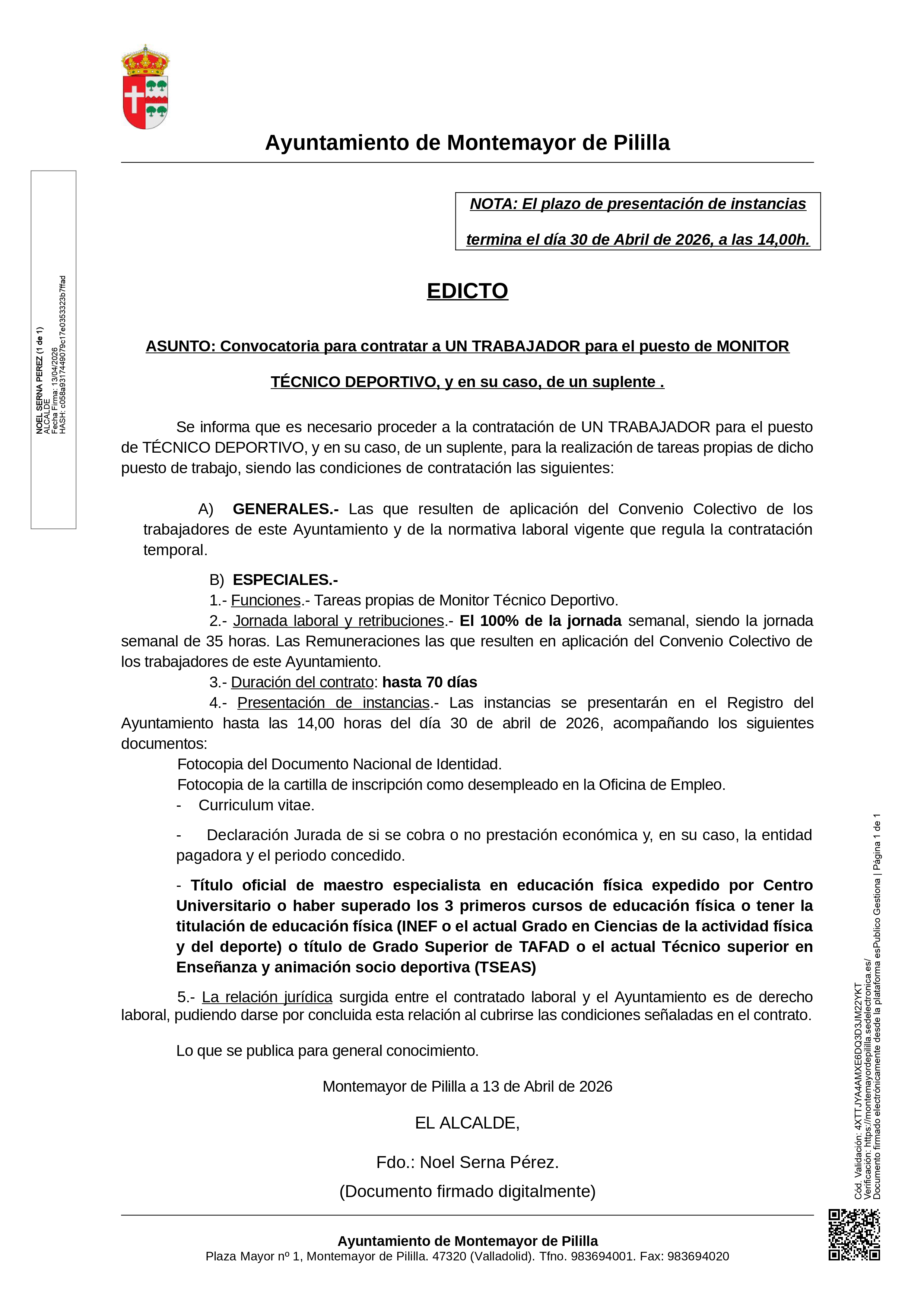 Les informamos que el plazo único de inscripción será desde el 3 de febrero y hasta el día 11 de febrero de 2026, a las 14:00h.