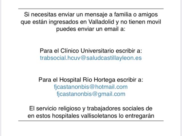 Manda tu mensaje a la dirección de correo electrónico apoyoafectadosCOVID19@saludcastillayleon.es